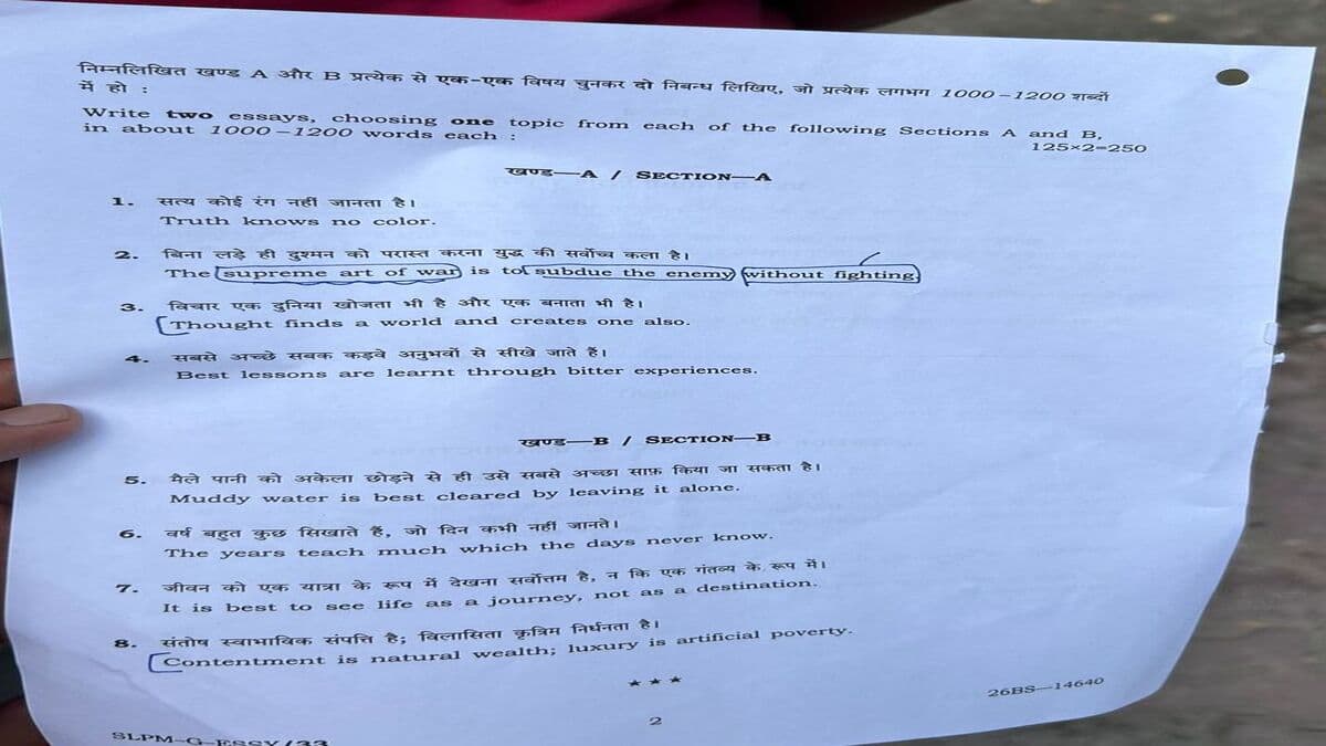 UPSC CSE Main 2025 essay paper hard copy. (Image source: Careers360)