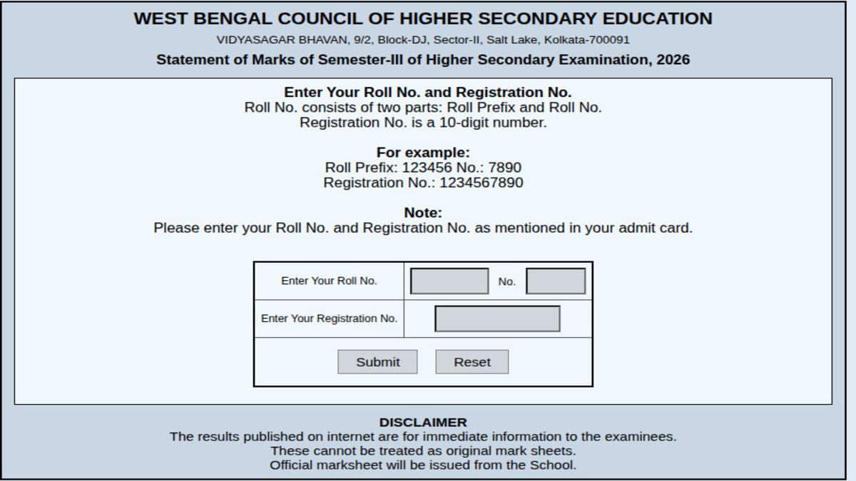 Students will have to type their roll number and registration number to access the WB HS results 2025 for semester 3 through the official website after 2 pm.